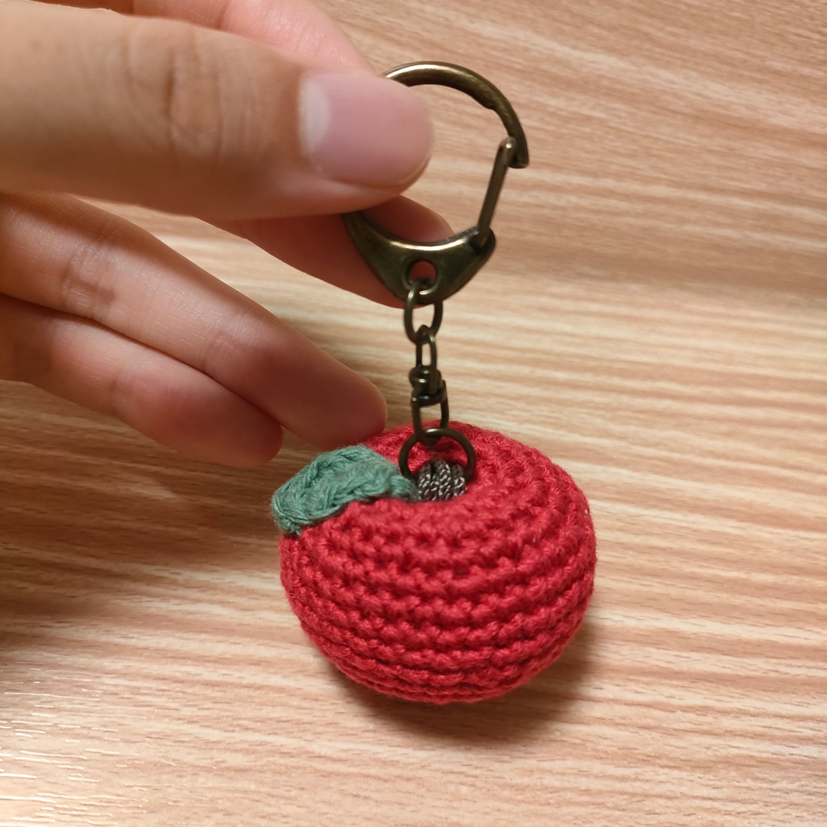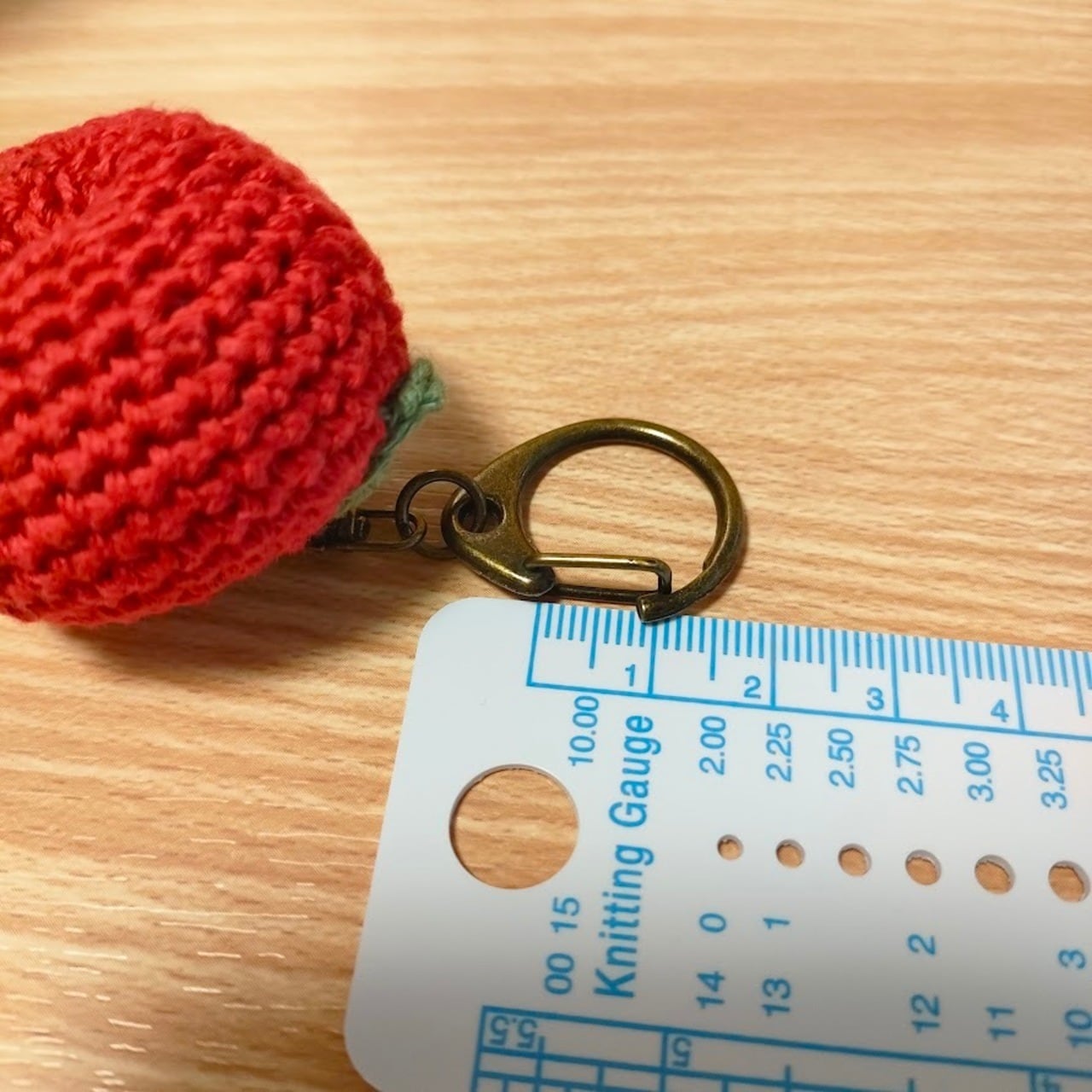 縦約3cm、直径約4cmの手のひらサイズのミニりんごを編みました。
