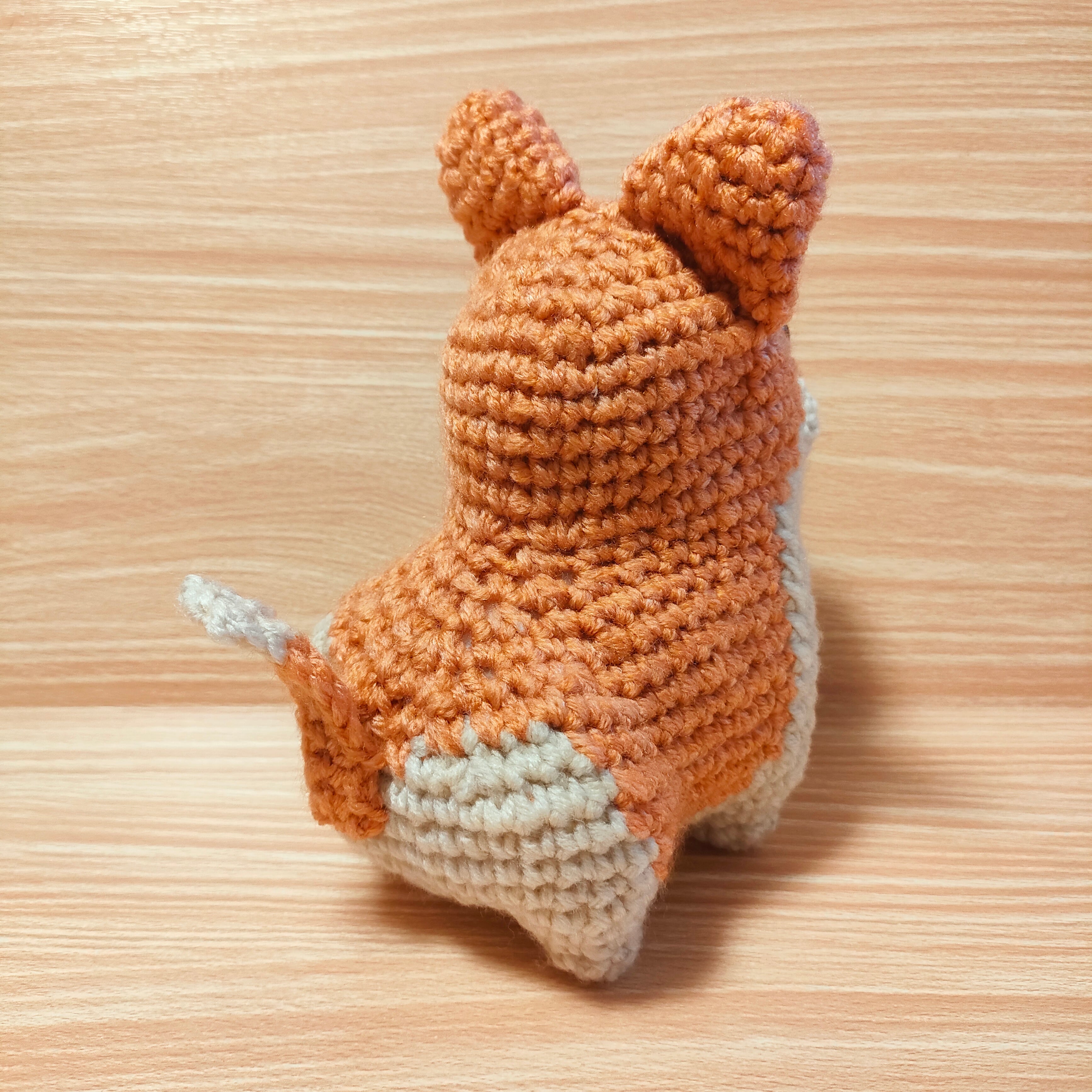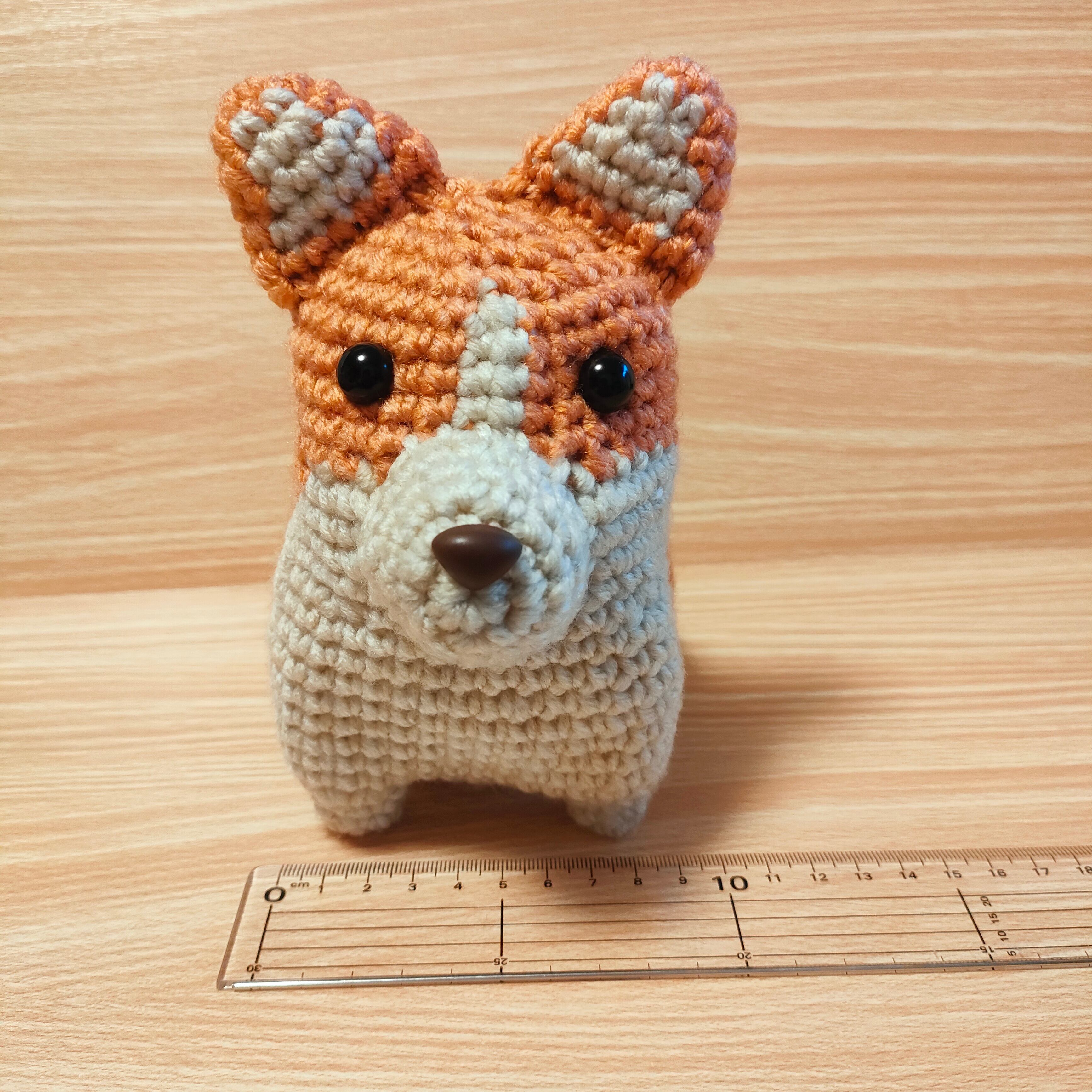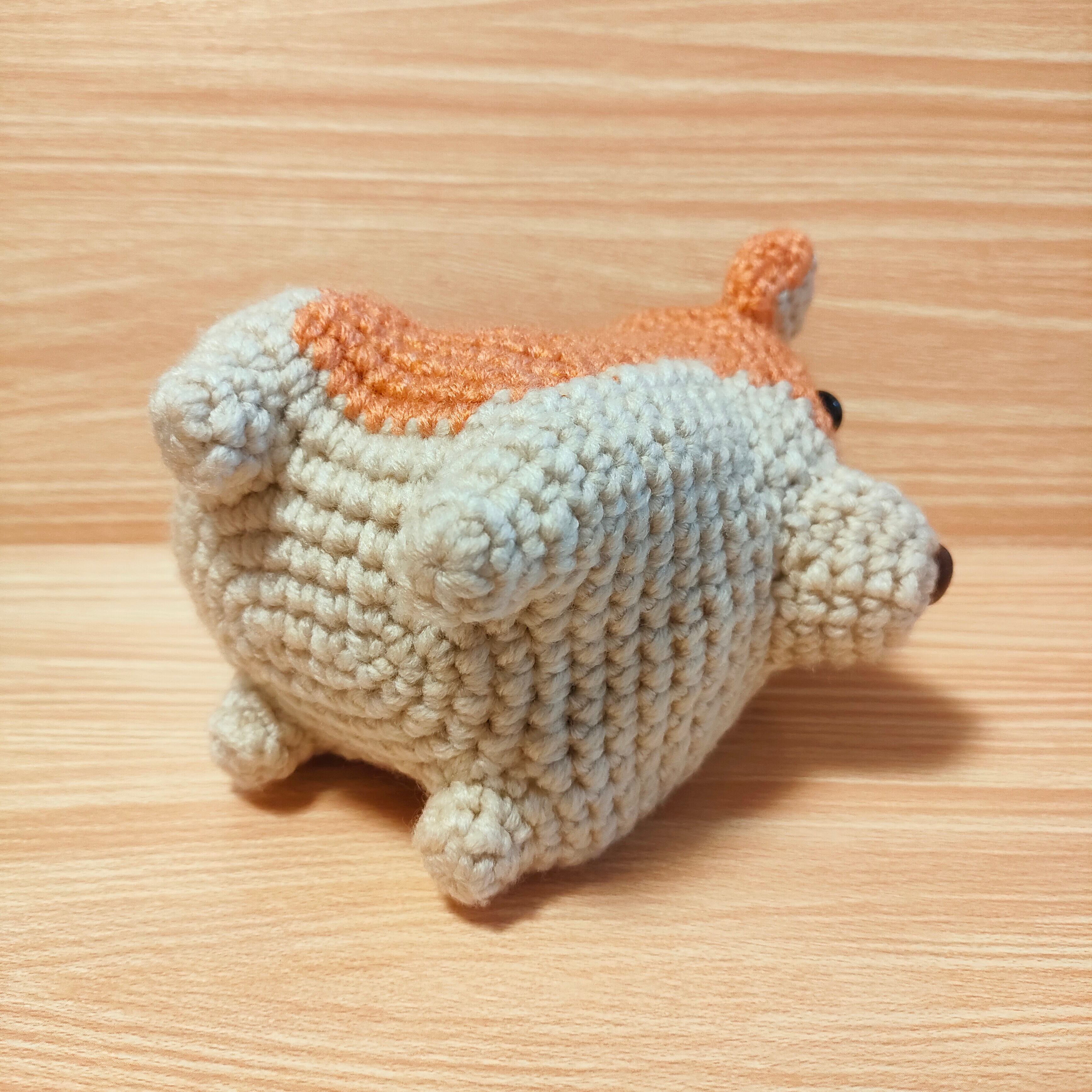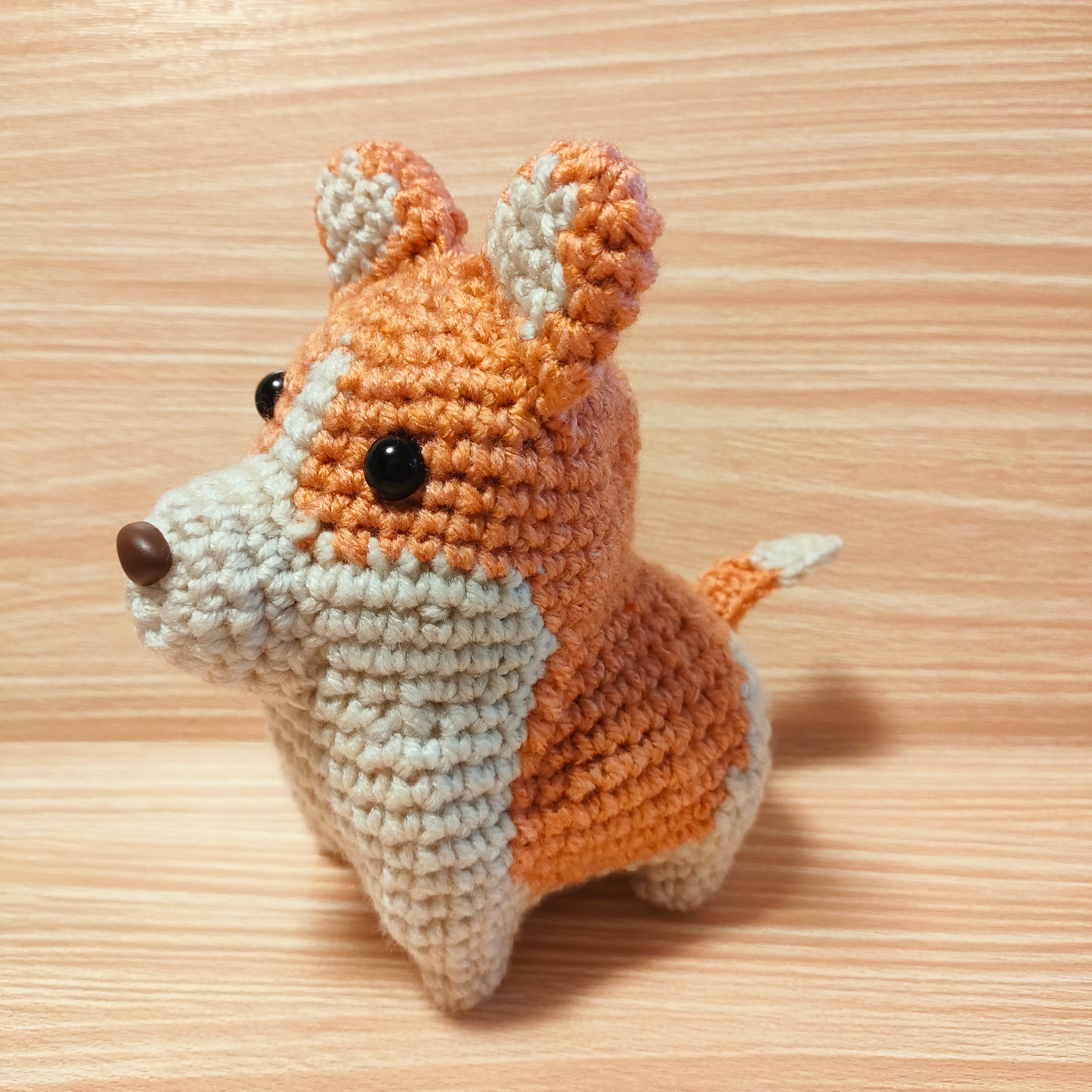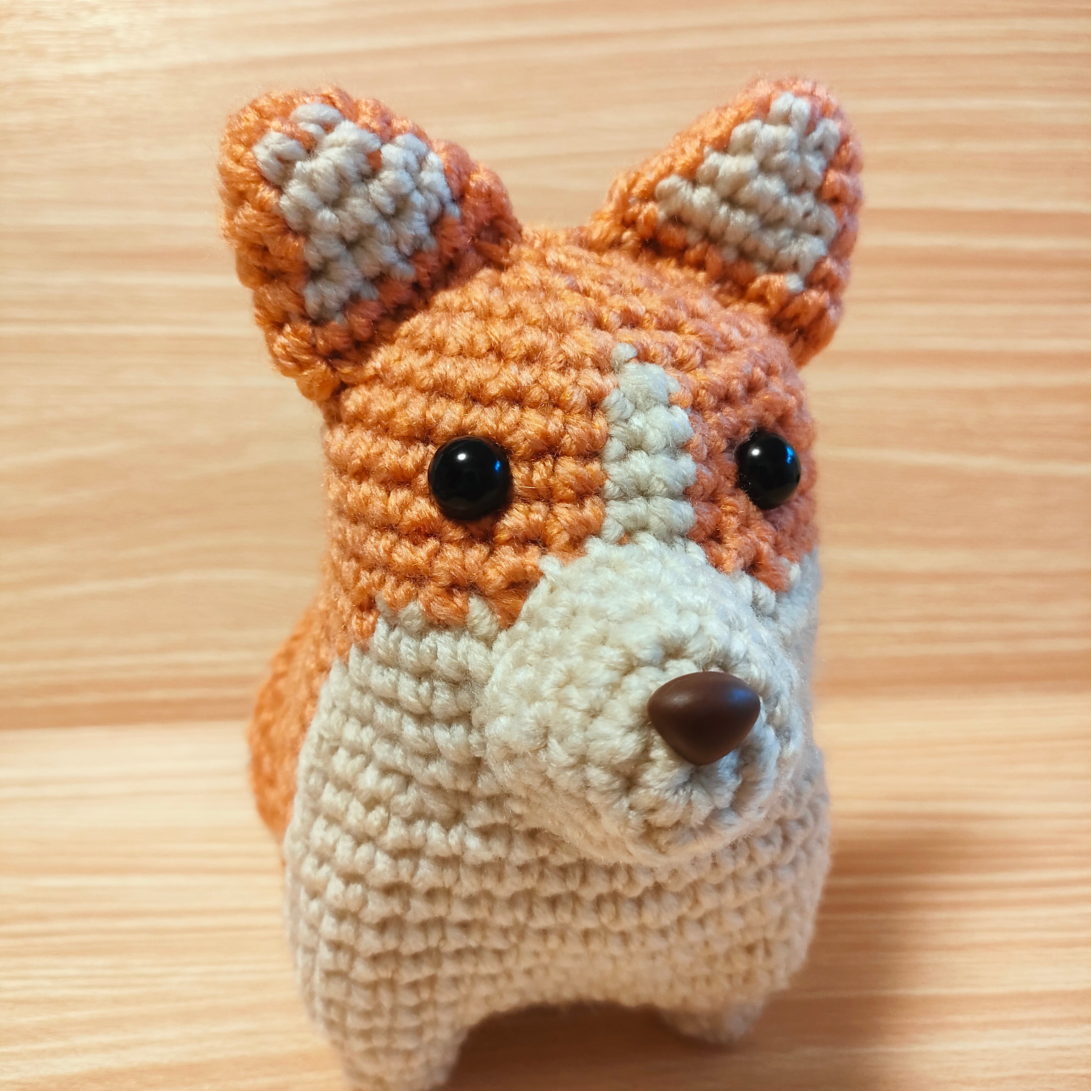 ころんとしたフォルムと、つぶらな瞳が愛らしいコーギーのあみぐるみ。