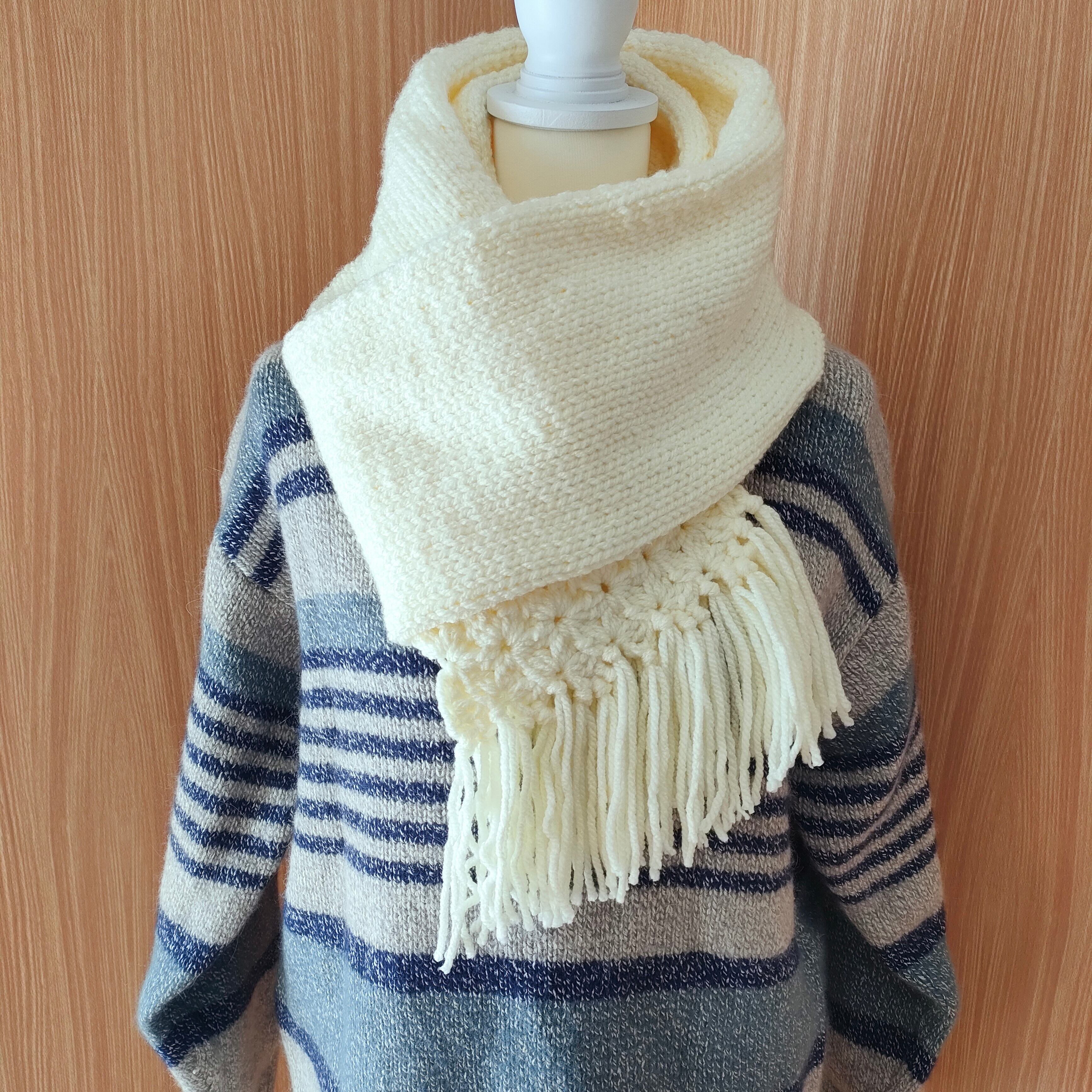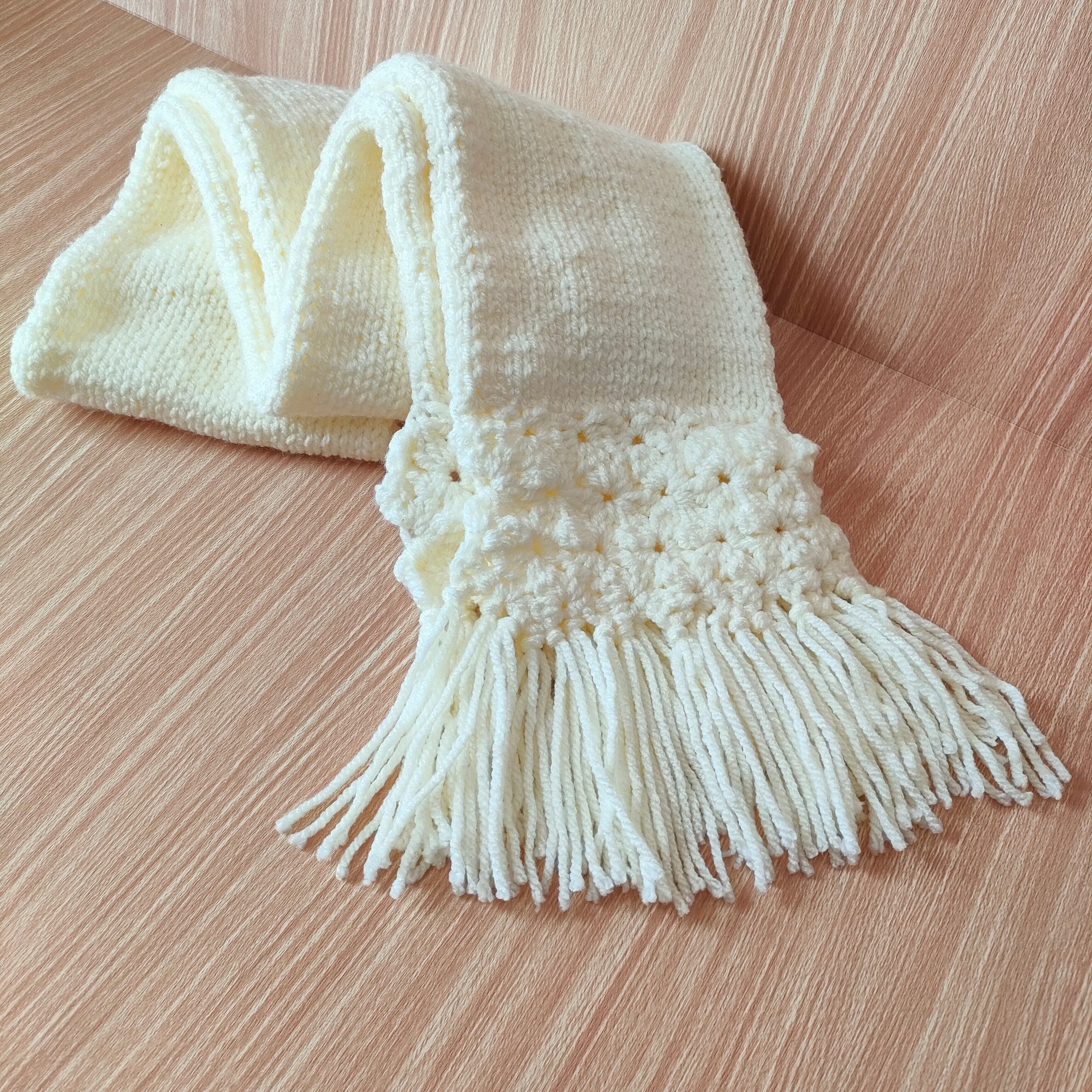 ■花模様とフリンジの二重構造マフラー(ホワイト)